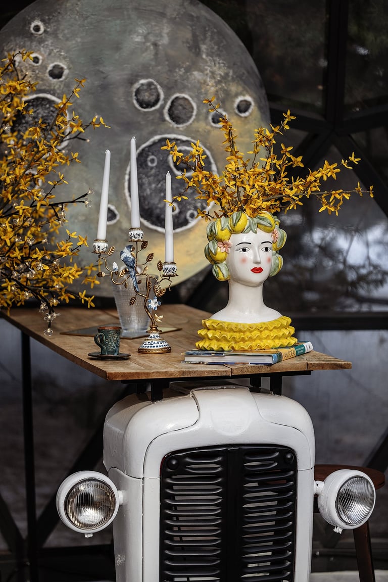 Stalo dekoras - žvakidės, žvakės, sezoninės gėlės, servetėlės, lėkštės ir taurės.